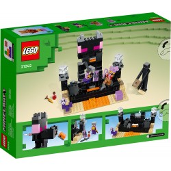 Οι παίκτες του Minecraft φέρνουν αντιμέτωπους έναν πολεμιστή του Εντ και έναν τοξότη δράκου στη θρυλική Αρένα του Εντ. Οι αντίπαλοι είναι εξοπλισμένοι με πανοπλία και όπλα, αλλά υπάρχουν κι άλλοι κίνδυνοι που πρέπει να ξεπεράσουν για να επιβιώσουν. Με το πάτημα ενός εκτοξευτή, μπλοκ λάβας πετιούνται από το στόμα του αγάλματος του Δράκου Έντερ που ορθώνεται πάνω από την αρένα, και ένα κινητό δάπεδο ανοίγει και ανακαλύπτει μια δεξαμενή με λάβα κάτω από τα πόδια των αντιπάλων. Επιπλέον δυνατότητες παιχνιδιού δίνουν 2 δημοφιλή πλάσματα Minecraft – ένας έντερμαν και ένα σάλκερ – και γνωστά αξεσουάρ από το βιντεοπαιχνίδι, όπως χρυσό καρότο και μαγικό φίλτρο. Για επιπλέον ψηφιακή διασκέδαση, η εφαρμογή LEGO Builder διαθέτει απλά εργαλεία ζουμαρίσματος και περιστροφής που επιτρέπουν στα παιδιά να βλέπουν το μοντέλο τους καθώς το κατασκευάζουν.